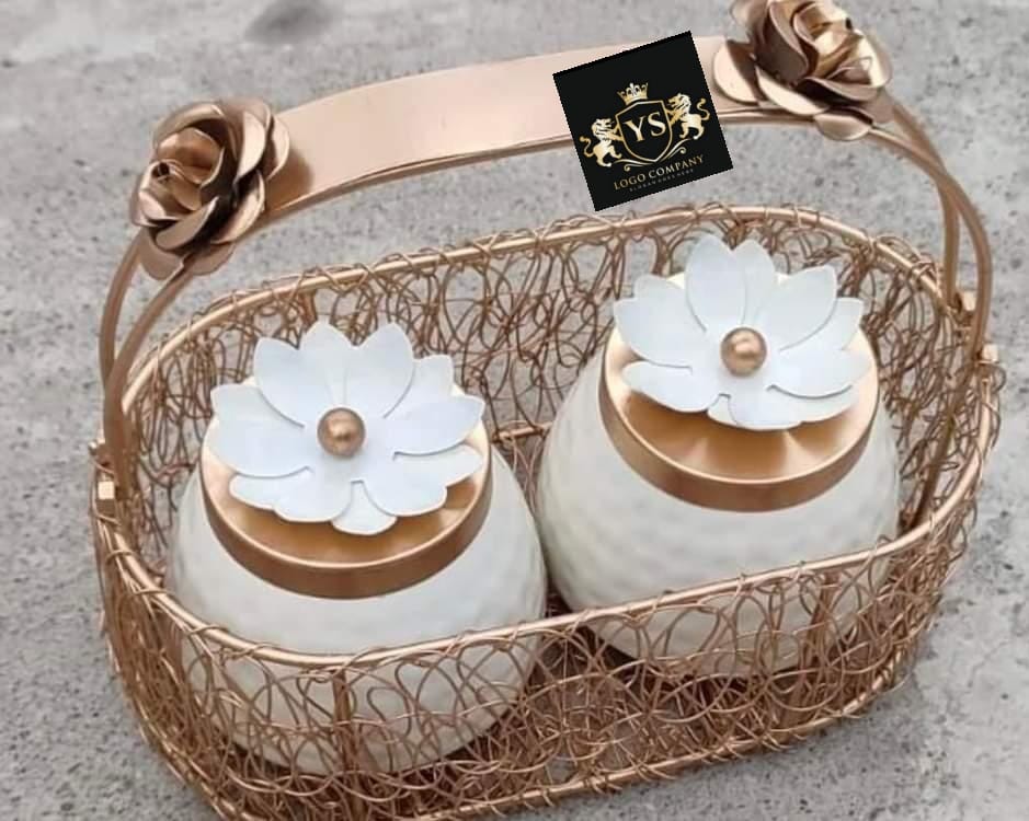 Golden Basket with 2 Dry fruit Jars (Set of 5)