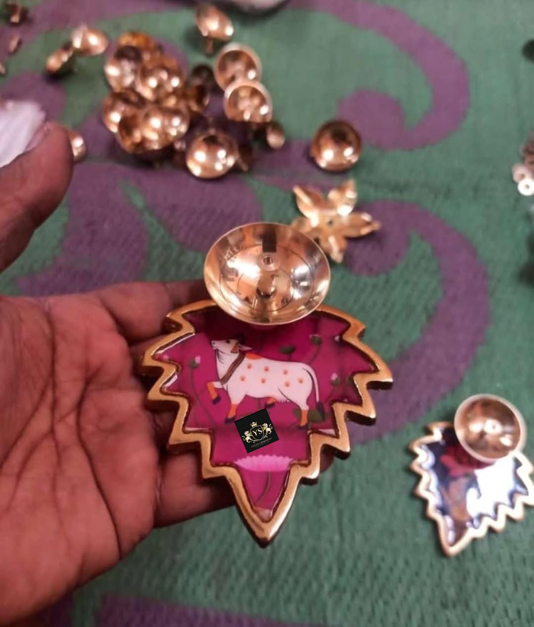 Metal Aluminum T light with Brass meena stikers finish flowers leafs ( set of 12)