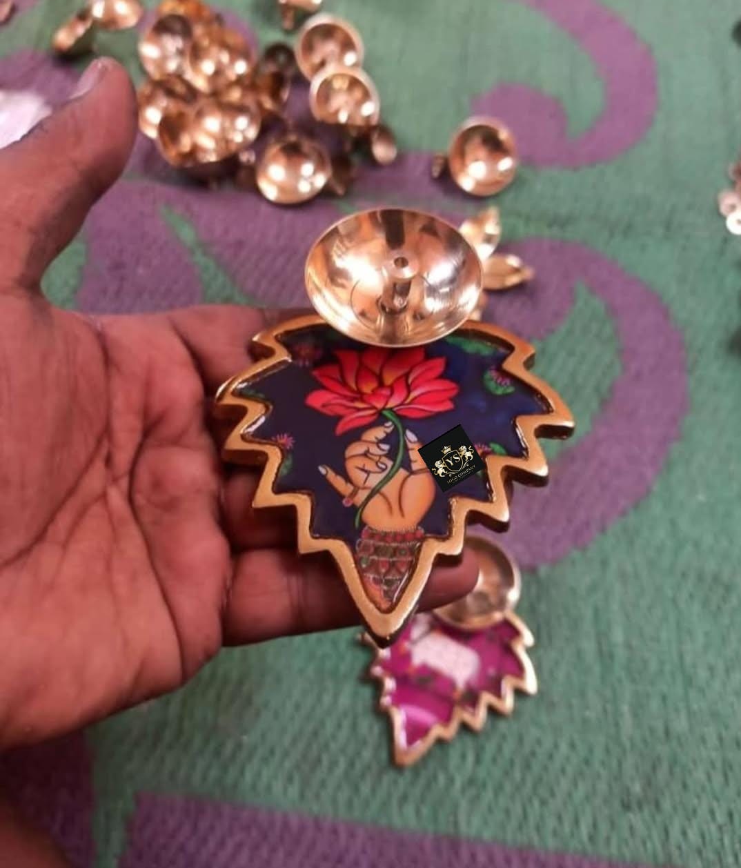 Metal Aluminum T light with Brass meena stikers finish flowers leafs